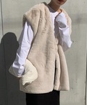 りのベスト「フェイクファーノーカラージレ」を使ったコーディネート