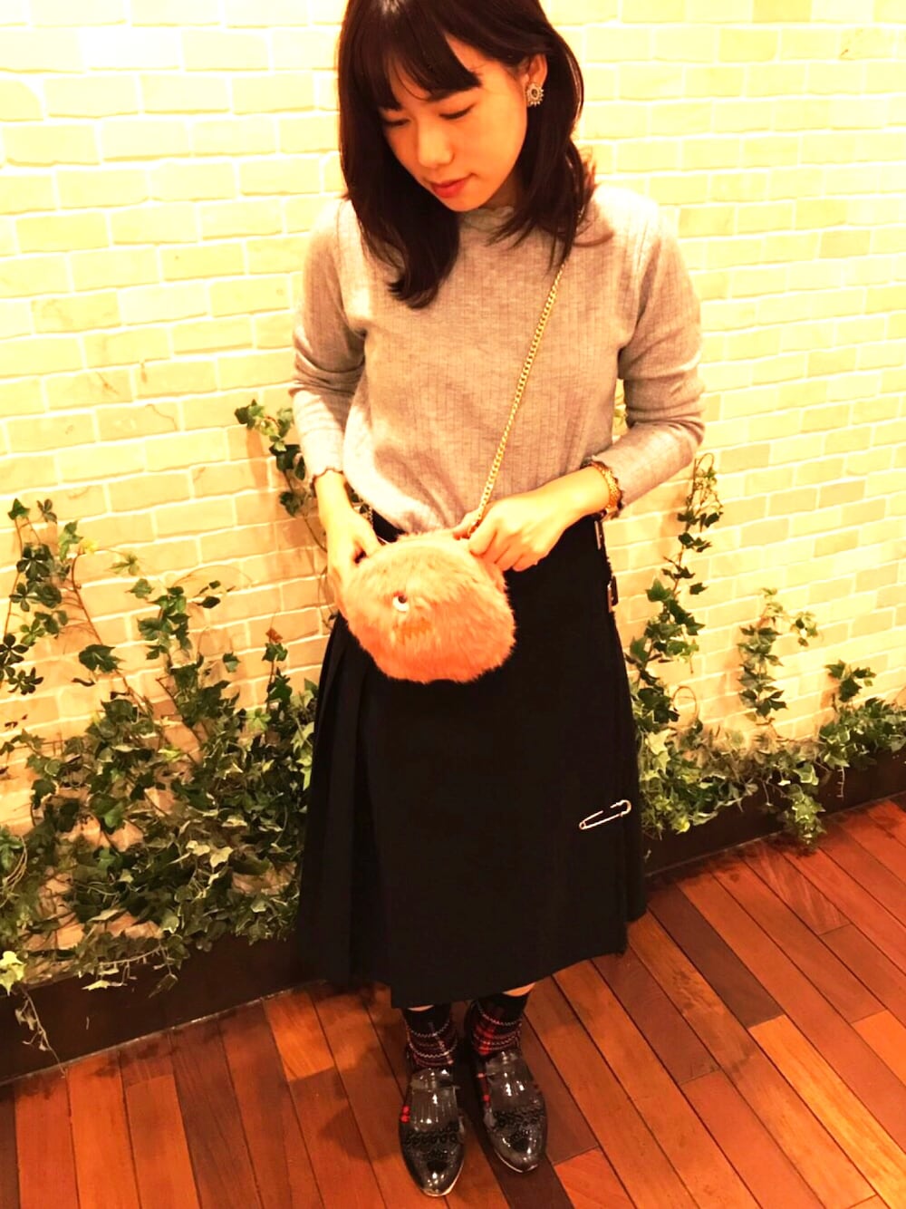 今日は少し暖かいので、薄手のリブニットとスカートを合わせました✨スカートはビショップのベルト付き巻きスカートです。プリーツがはいっているのがお気に入りのポイントです👀 全体が無地なので、赤いチェックの靴下を合わせることで明るさを出してみました!靴下はフレッドペリーのものです🌟 バッグはACCOMMODE10周年限定カラー、コーラルピンクのものを使っています!