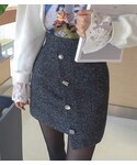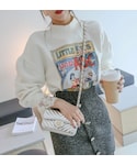 オトナフェミニンルックの紹介です! トップスは フロントのイラストプリントがPOINTになったスウェットです。 レースのブラウスをレイヤードしたかのようなデザインが魅力的! フェミニンコーデにピッタリの一枚です! スカートはミックスカラーがニュアンスのある着こなしを叶えます。 形の異なるボタンが上品なアクセントになってくれます。 バッグは コンパクトなサイズ感が可愛いシルバーカラーのキルティングバッグです。 デートルックにおすすめです!