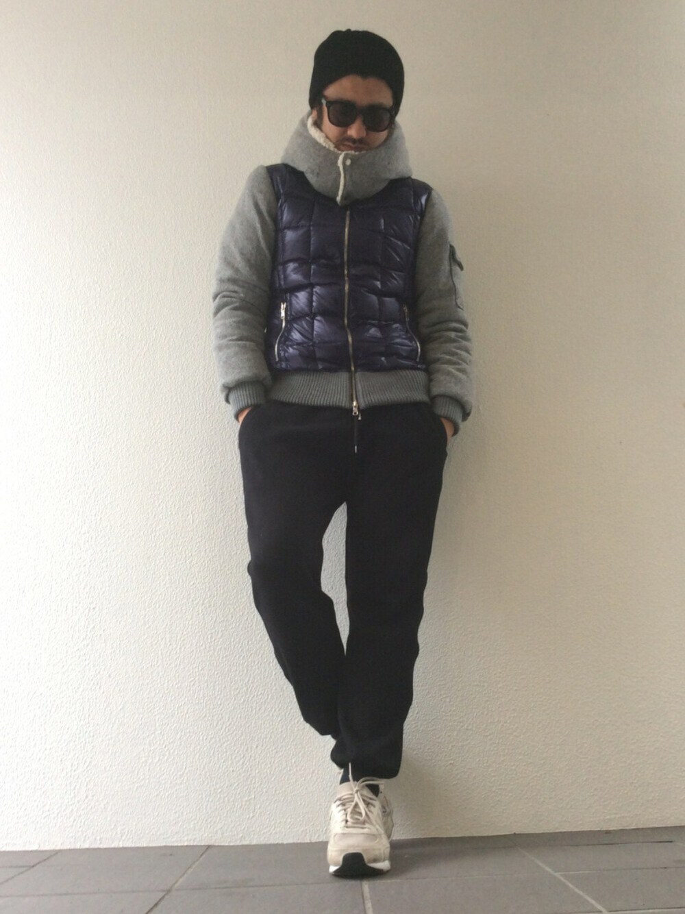 本日のコーディネート☆ ニットダウンにスウェットパンツとラフ感を出し 大人カジュアルを意識したスタイリングにしてみました。