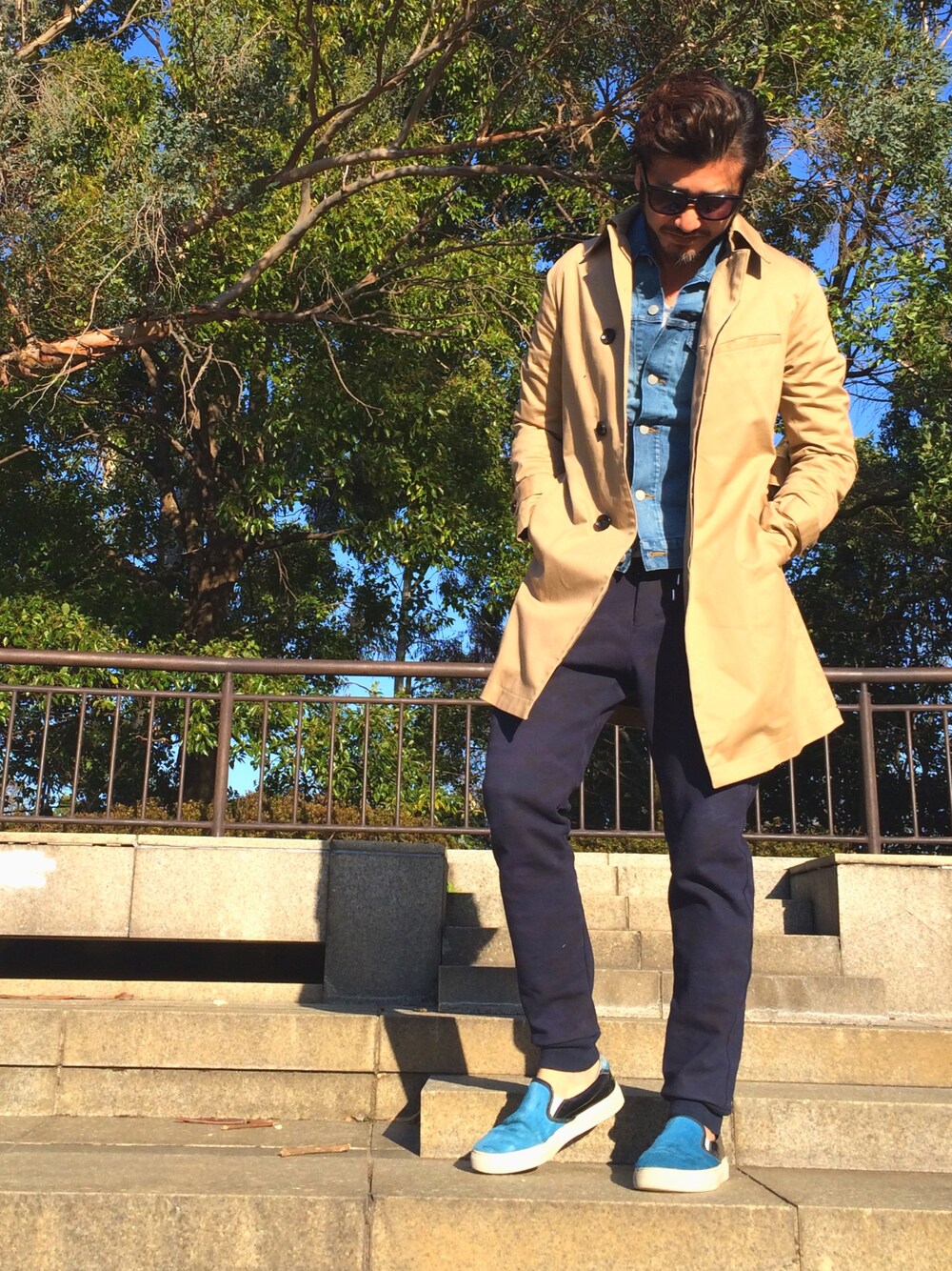 ベージュのトレンチコートのインナーにGジャンを合わせてみました☆ ■アウター インナー、パンツを迷わずどんなスタイルにも合うベージュのトレンチコートをチョイスしてみました☆ ■インナー インナーにスウェット素材のGジャンを着てトータルコーディネートの締めアイテムに♪ ■パンツ カモフラ柄のスウェットパンツ。 柄も主張しすぎてないので合わせやすい一点です! ■スニーカー 色モノのスリッポンを合わせてオシャレ感を出してみました! 是非、コーディネートの参考にしてみて下さい☆