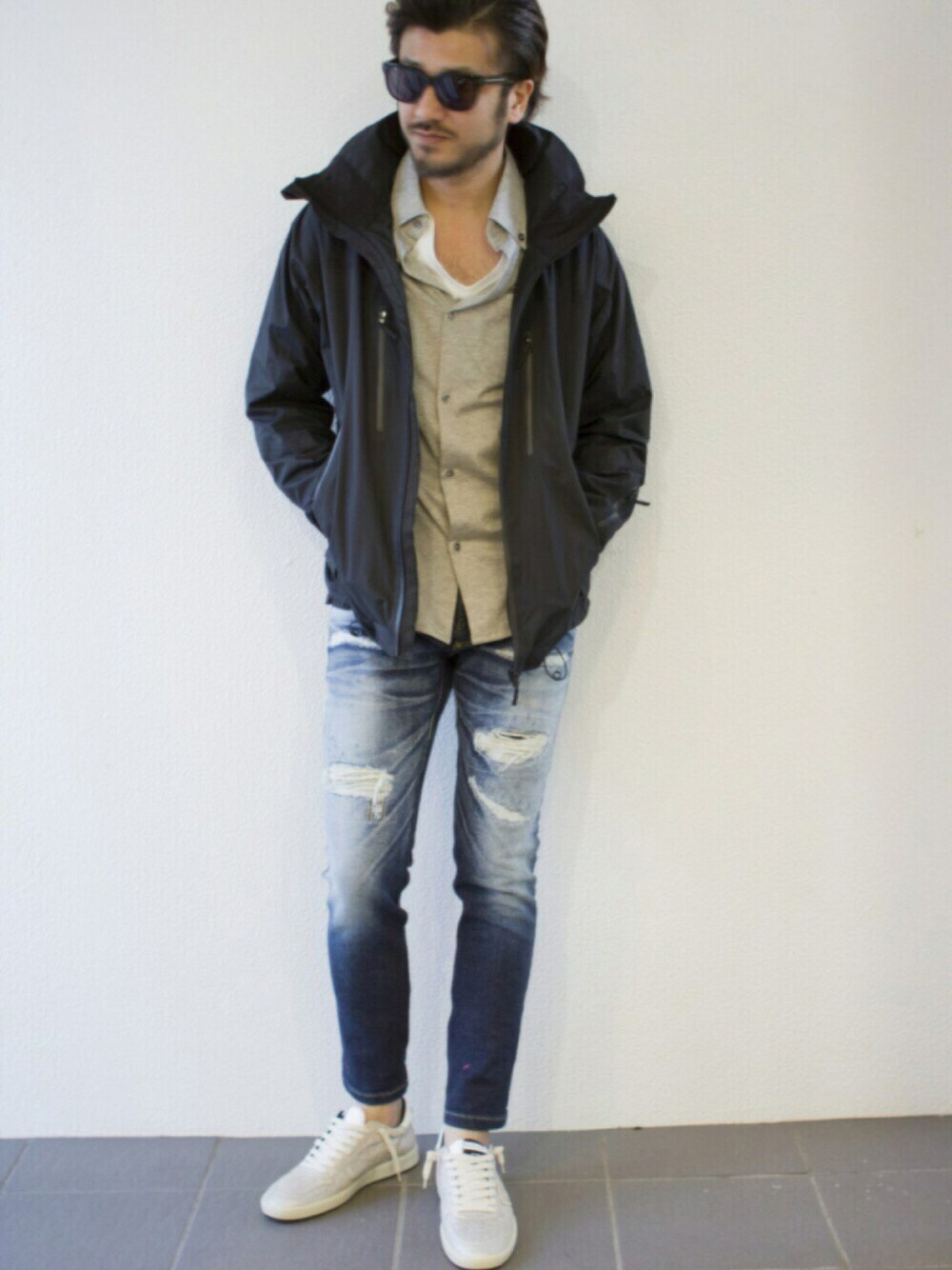 今日は気温も高くとても暖かいので、ナイロンパーカーを着てみました。 ■アウター ナイロンパーカーを羽織り大人カジュアルを意識したコーディネートです☆ ■インナー コットン素材のシャツをインナーに合わせる事でキッチリ感を出してみました♪ ■パンツ ジャージ素材のクラッシュデニムパンツなのでストレスなく履ける一点です! ■スニーカー 少し色にくすみがあるスニーカーを合わせる事で、 大人のスタイリングにはもってこいのアイテムです!