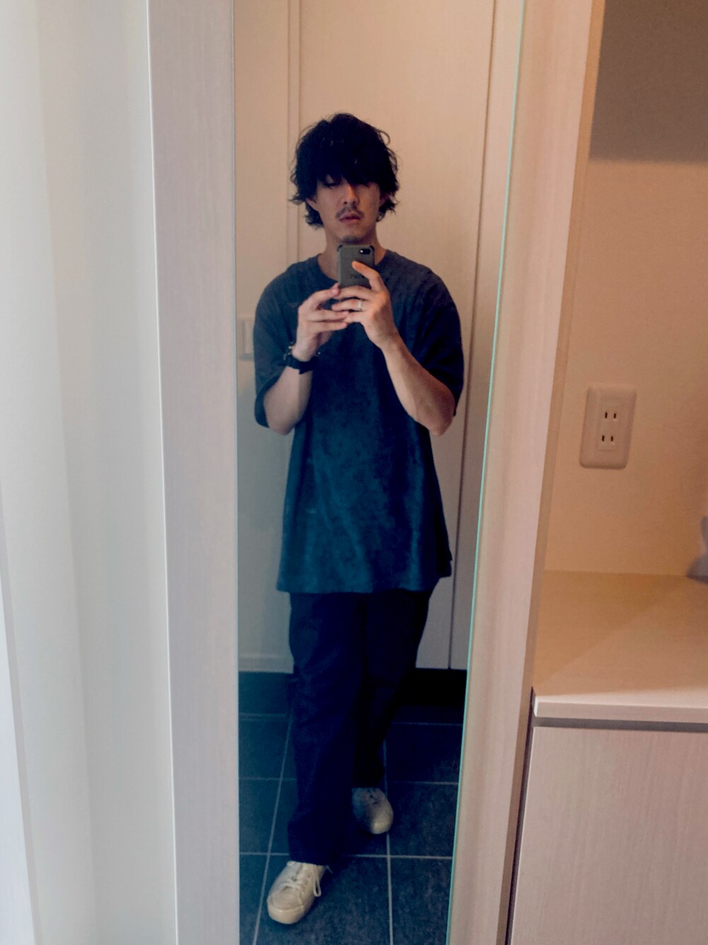 vansとc2h4のコラボtシャツをオーバーサイズ気味で着用しています。 パンツはロンハーマン別注のディッキーズで、シューズもvansです。 アウトレットで4000円で購入してから、ベージュが使いやすいので、大活躍してます。