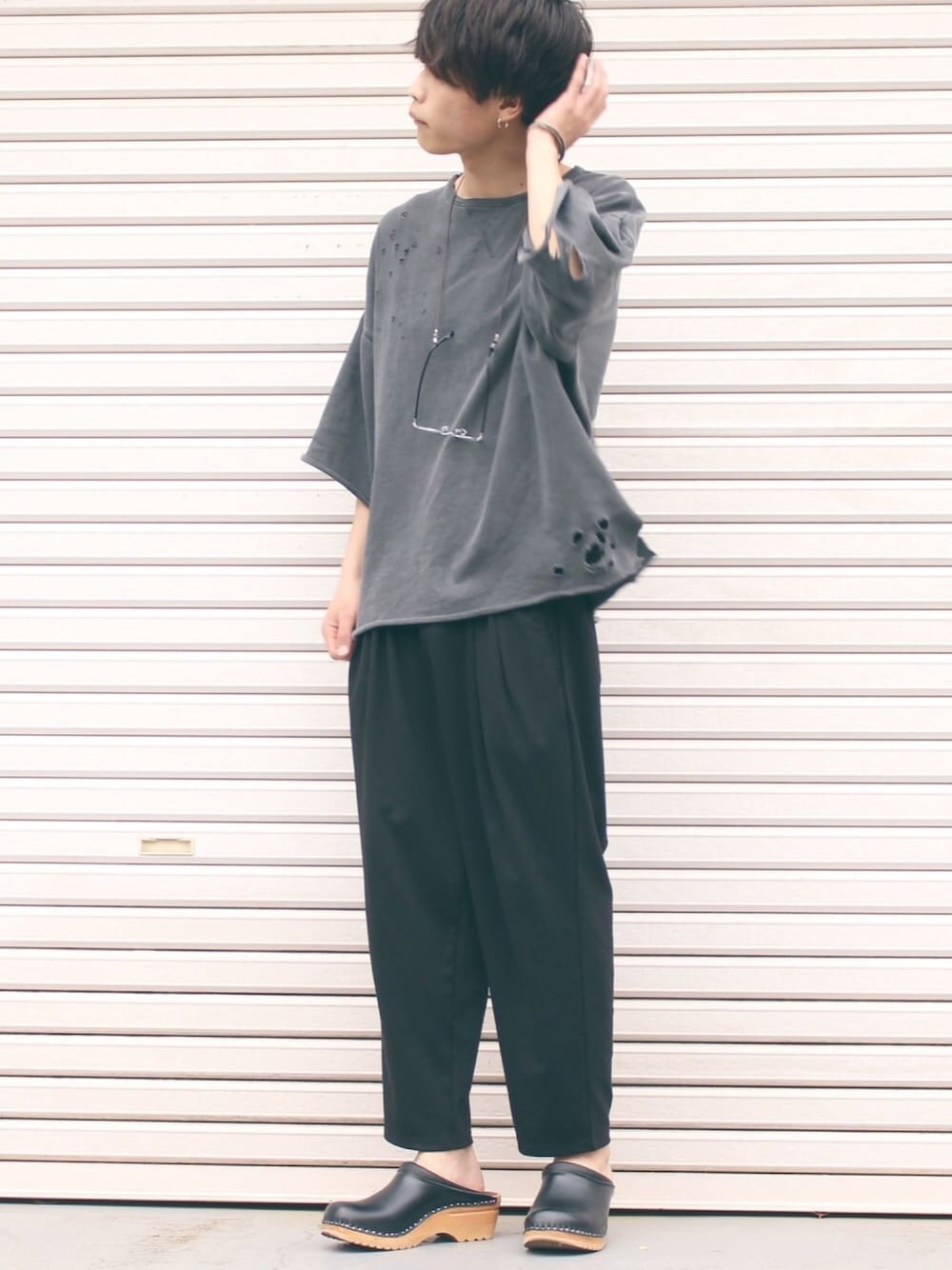 daikikunnのTシャツ/カットソー「クラッシュスエットプルオーバー5分袖(HARE)」を使ったコーディネート