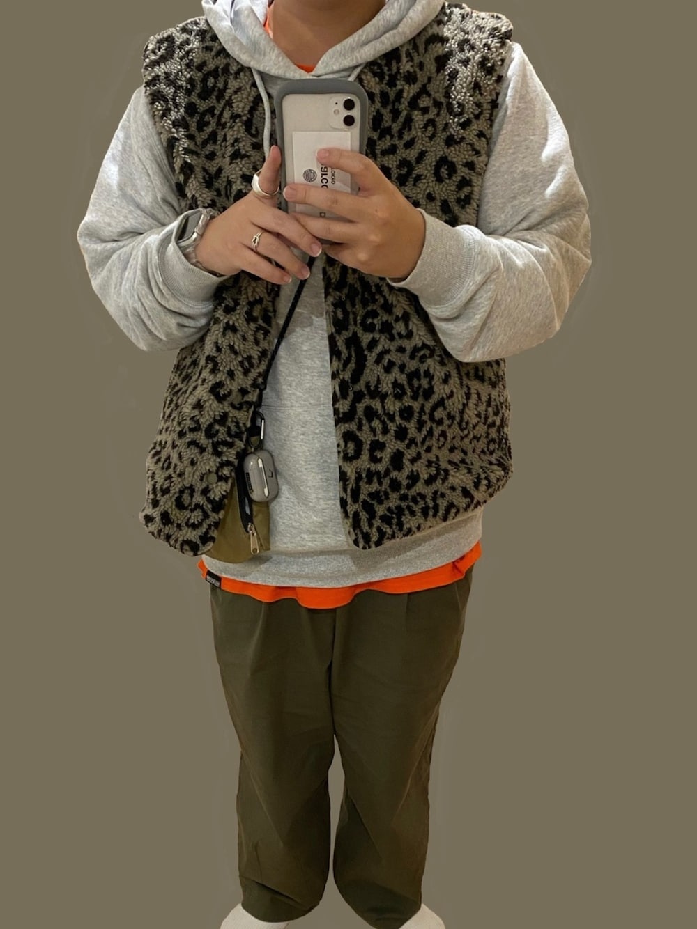 ベストはリバーシブル。 最近のお気に入りはレオパ🐆 オレンジ差し色かわいいよね。