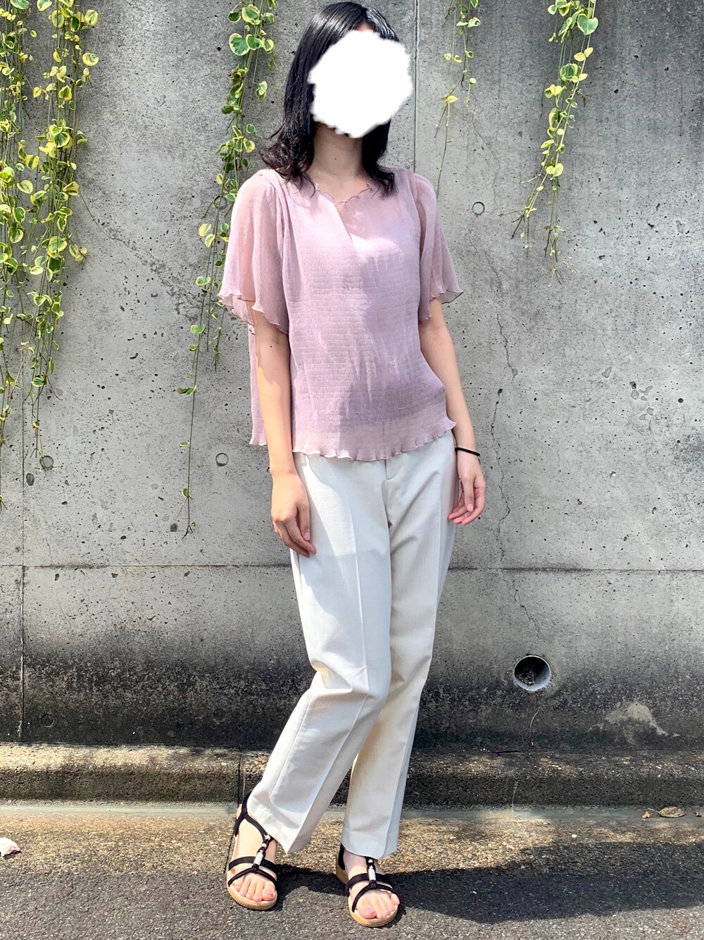 . 今日も見ていただきありがとうございます😃 . シアートップスを使ったコーデです! . 8月も終わりますがまだまだ暑いですね🥵 夏服投稿ももう少し続きそうです💭