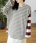 daharalepsim(LEPSIMステラタウン)のTシャツ/カットソー「袖ワイドボーダープルオーバー 131549」を使ったコーディネート