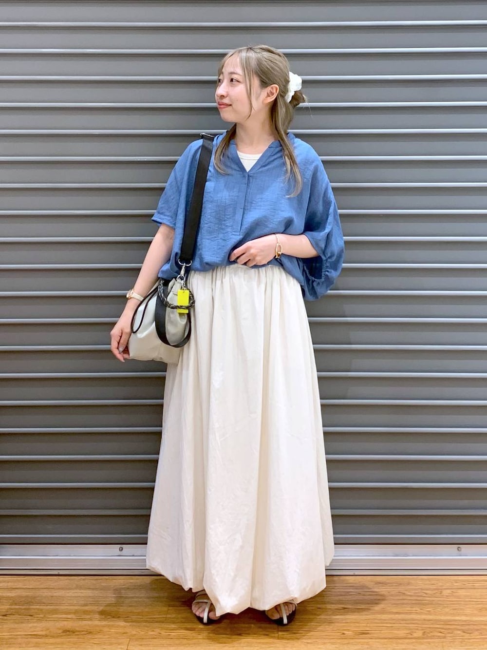 【151cm/低身長/腰回りコンプレックス】 ▽ トップス:ゆったり 151cmの私が着た感じは全体的にゆったりめです! インせず着るとお尻もすっぽり隠れる丈感で 袖は肘あたりまでくるので 気になるところをカバーしてくれます◎ 袖口にはギャザーが入っていて ゴムなので伸びが良く動きやすいです♪ サラサラな肌触りで夏快適に過ごせそうです! ▽ スカート:ゆったり バルーンスカートですが広がりすぎず 程よいボリュームで着やすや◎ ウエストのゴムも伸びが良く お腹周りがとっても楽ちんです♪ ━︎・━︎・━︎・━︎・━︎・━︎・━︎・━︎・━︎・━︎・ ご覧いただきありがとうございます\♡︎/ 店頭でもお気軽にお声がけください! も更新中🐼 ━︎・━︎・━︎・━︎・━︎・━︎・━︎・━︎・━︎・━︎・