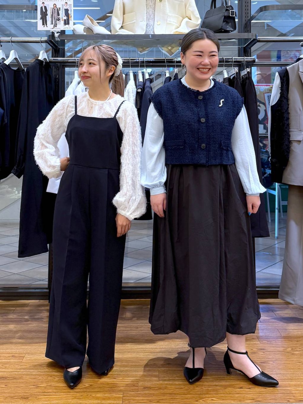さんとインスタライブで ご紹介したコーデを撮影しました🌟 着用者身長↓ 【おなつさん/160cm、だーはら/151cm】 だーはら着用アイテム 【151cm/低身長/腰回りコンプレックス】 ▽ トップス:ゆったり 表面感のある素材がポイントの ジャガードブラウスです! たっぷりとした袖のボリューム感が可愛い! ジャケットのインナーで合わせても 華やかさを演出できます◎ ▽ サロペット:ゆったり すっきり見えが叶うキャミサロペットです! ご自身の身長に合わせて着用できるので 低身長さんにもオススメです✨ 手洗いでの洗濯が可能なので 綺麗な状態で長くお使いいただけます! セレモニーやお仕事シーンだけでなく 普段使いもしやすいです♪ 151cmで肩紐調節部分は 肩のあたりまで短くして着ています! ━︎・━︎・━︎・━︎・━︎・━︎・━︎・━︎・━︎・━︎・ ご覧いただきありがとうございます\♡︎/ 店頭でもお気軽にお声がけください! も更新中🐼 ━︎・━︎・━︎・━︎・━︎・━︎・━︎・━︎・━︎・━︎・