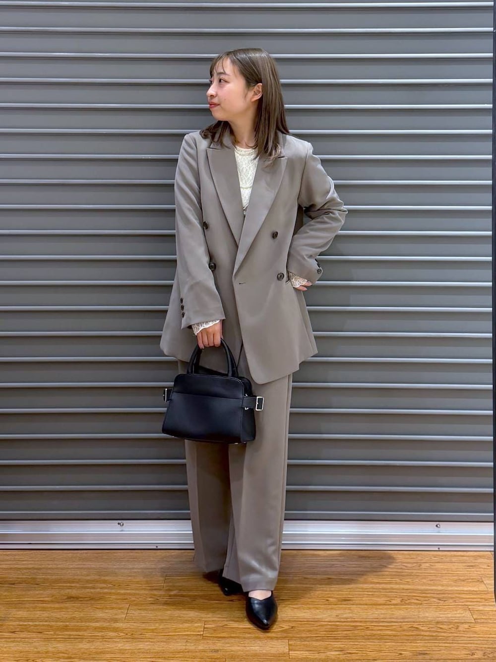 【151cm/低身長/腰回りコンプレックス】 ▽ ジャケット:ゆったり 昨年大好評だったダブルジャケットが今年も登場! 長めの着丈と程良いゆとりがありますが すっきり見えする綺麗なシルエットです♪ ご自宅で洗えるのも嬉しいポイント✨ セレモニーやお仕事シーン 普段使いなどもできるので着回し力抜群! 同素材のワイドパンツなどと セットアップで着用するのがおすすめです◎ ▽ レースインナー:ゆったり 伸縮性のある生地で肌に馴染みやすい インナートップスです! 透け感のあるシアーレースなので オールシーズンで着用することができます! 透け感があるので下にもう1枚同色インナーを 合わせて着ると透けが目立たないので安心です✨ ▽ パンツ:ゆったり ワイドシルエットながらハイウエストデザインで 脚長効果が抜群のパンツです! ストレッチ性が良いので動きやすいのも 嬉しいポイントでセレモニーやお仕事にもぴったり! 普段使いも◎ 手洗いでお洗濯も可能です✨ 151cmだとやや長いので 少し高さのある靴と合わせるのがオススメです! ━︎・━︎・━︎・━︎・━︎・━︎・━︎・━︎・━︎・━︎・ ご覧いただきありがとうございます\♡︎/ 店頭でもお気軽にお声がけください! も更新中🐼 ━︎・━︎・━︎・━︎・━︎・━︎・━︎・━︎・━︎・━︎・