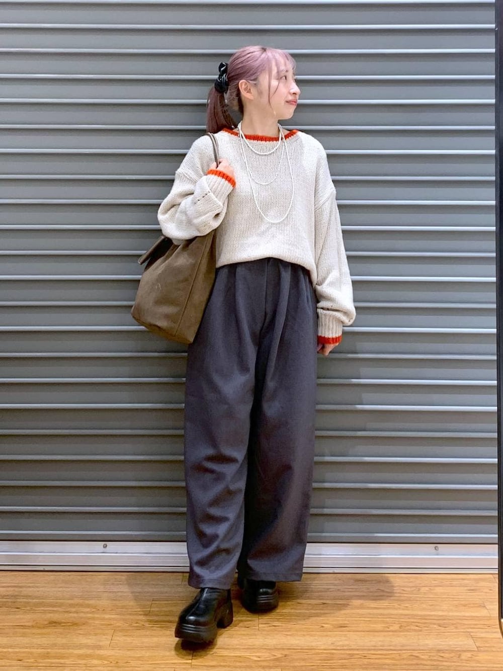 【151cm/低身長/腰回りコンプレックス】 ▽ トップス:ゆったり MIX調の糸を使用し、襟元・裾・袖部分に カラー配色を施したショート丈のニットです! ふんわりとした軽いニットなので 春まで長く着用することができます♪ ショート丈ですが短すぎないのも嬉しいポイント🌟 ▽ パンツ:ゆったり ベーシックで使いやすいストレートパンツです! ウエストが総ゴム仕様になっていて 内側に調節紐をつけているので 楽に着用することができます👍 カジュアルすぎない素材を使用しているので 様々なスタイリングをお楽しみいただけます◎ 151cmハイウエストで着用してます! ━︎・━︎・━︎・━︎・━︎・━︎・━︎・━︎・━︎・━︎・ ご覧いただきありがとうございます\♡︎/ 店頭でもお気軽にお声がけください! も更新中🐼 ━︎・━︎・━︎・━︎・━︎・━︎・━︎・━︎・━︎・━︎・
