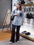 【151cm/低身長/腰回りコンプレックス】 ▽ デニムシャツ:ゆったり 今回は胸元に刺繍を施し 加工デザインがポイントになっています! オーバーサイズはそのまま 羽織りとしても着用できる1枚です✨ 151cmでオーバーサイズを着ても だらしないダボっと感が無く着れます👍 お尻も隠れて腰回りカバーも◎ ▽ レースインナー:ゆったり 伸縮性のある生地で肌に馴染みやすい インナートップスです! 透け感のあるシアーレースなので オールシーズンで着用することができます! 透け感があるので下にもう1枚同色インナーを 合わせて着ると透けが目立たないので安心です! 身体のラインを拾いすぎないのも嬉しいポイント🌟 ▽ パンツ:ゆったり 膝あたりから裾にかけて フレアが広がるデザインのパンツです! 脚が長く見え、スタイルアップが叶います! 素材も柔らかくストレッチが効いているで 動きやすさも抜群です👏 ウエストもゴムなので楽ちん! ━︎・━︎・━︎・━︎・━︎・━︎・━︎・━︎・━︎・━︎・ ご覧いただきありがとうございます\♡︎/ 店頭でもお気軽にお声がけください! も更新中🐼 ━︎・━︎・━︎・━︎・━︎・━︎・━︎・━︎・━︎・━︎・
