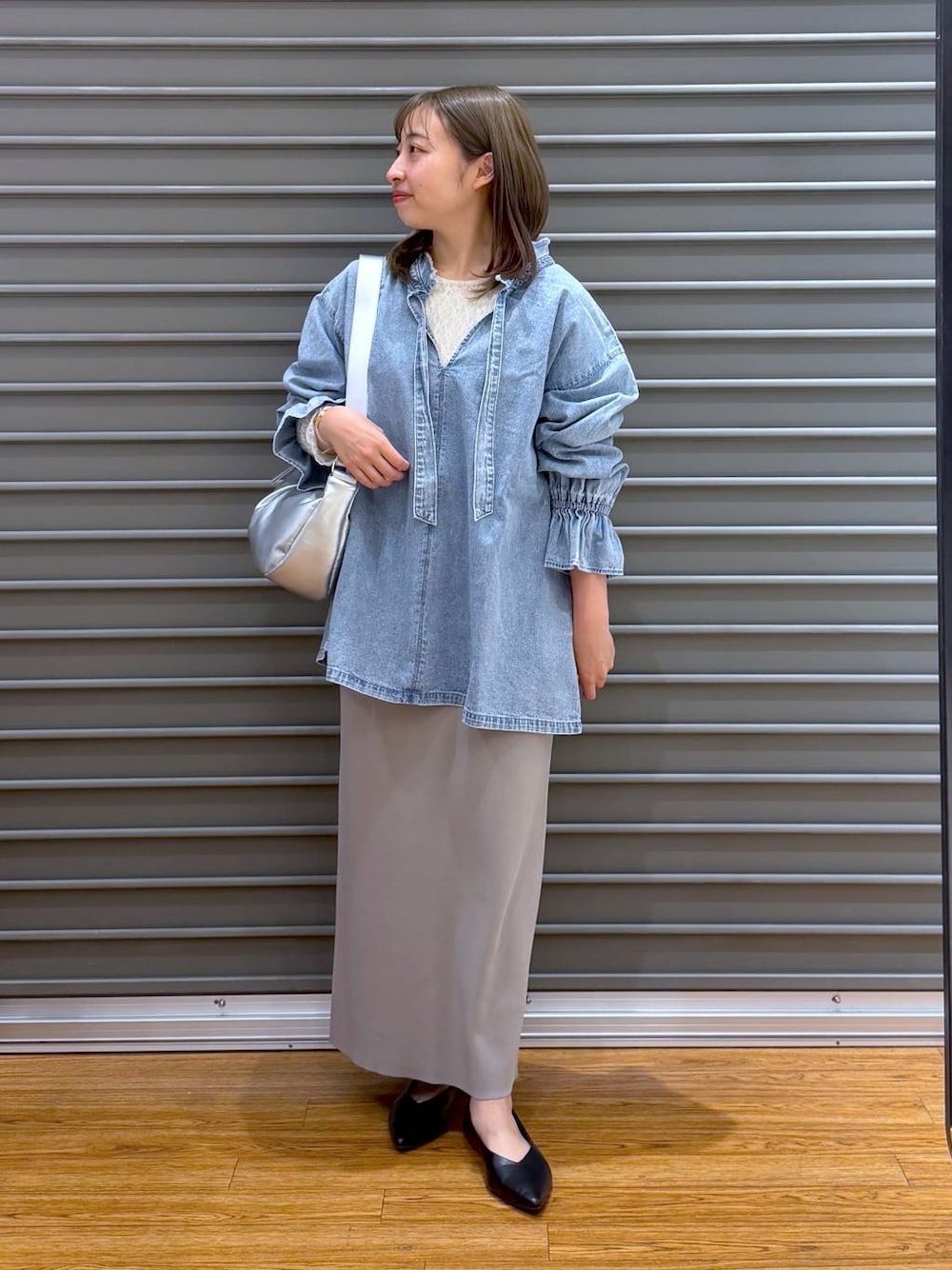 【151cm/低身長/腰回りコンプレックス】 ▽ トップス:ゆったり デニムのフリルカラーが大人可愛いブラウスです! 袖がキャンディースリーブになっており カジュアル見えするデニム素材でも フェミニンな印象で着れます♪ 首元が開いているのでインナーを合わせても 顔周りがすっきり見えし軽やかな印象に◎ リボンの紐は垂らしても結んでも可愛いです✨ ▽ スカート:ゆったり LEPSIM大人気のニットナロースカート🌟 すっきりとしたナロースカートで 伸縮性もあり動きやすいです! 今回も丈の長さが選べます♪ 151cm【フリーサイズ】の方着用してます! チクチク感もなく肌触り◎ お家洗い可能なのも嬉しいポイントです! ━︎・━︎・━︎・━︎・━︎・━︎・━︎・━︎・━︎・━︎・ ご覧いただきありがとうございます\♡︎/ 店頭でもお気軽にお声がけください! も更新中🐼 ━︎・━︎・━︎・━︎・━︎・━︎・━︎・━︎・━︎・━︎・
