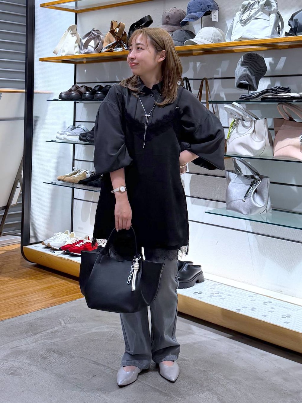 【151cm/低身長/腰回りコンプレックス】 ▽ シャツ:ゆったり シワになりにくく落ち感のある素材なので 綺麗見えするシャツです! 前を開けて羽織りとしても着用できるので 様々なスタイリングをお楽しみいただけます♪ 肌触りもさらさらで着心地◎ アイロンなしでも着れちゃいます👍 ▽ サテンキャミ:ゆったり トップスにONしたり インナーとして裾出しレイヤードにしたり スタイリングに取り入れやすいプラスワンアイテム! サテンはシボ感のある素材を使用して ランジェリーっぽくならないようにしています✨ 肩紐で丈感調節可能です! ▽ パンツ:ゆったり ストレッチがかなりきいていて ピチピチ感無く穿けます!ウエストも伸縮性あり◎ かなり動きやすくて感動💯 脚のラインも拾いにくいのでスッキリ見えします! ━︎・━︎・━︎・━︎・━︎・━︎・━︎・━︎・━︎・━︎・ ご覧いただきありがとうございます\♡︎/ 店頭でもお気軽にお声がけください! も更新中🐼 ━︎・━︎・━︎・━︎・━︎・━︎・━︎・━︎・━︎・━︎・