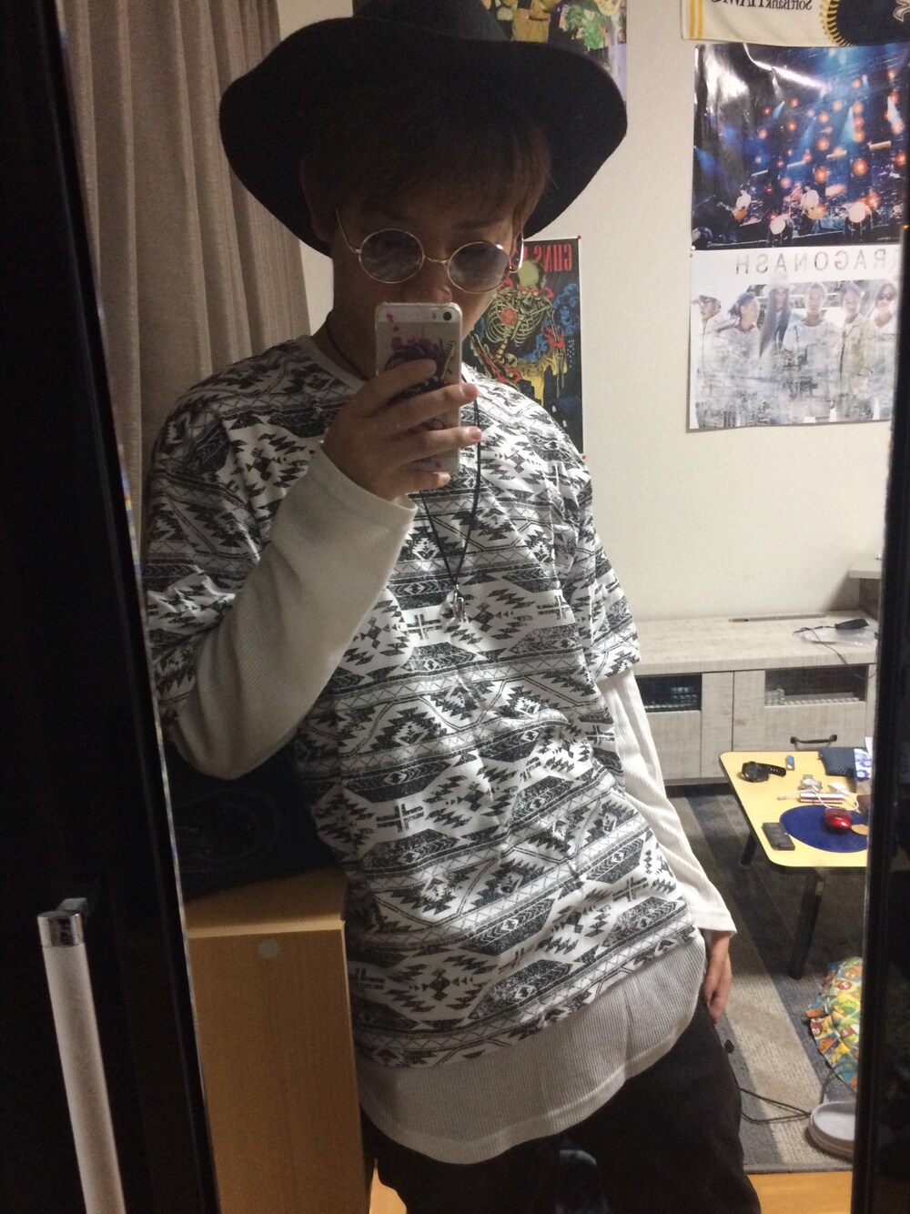 ご覧頂きありがとうございます。先ほどのハットを黒にした版。 これも雰囲気一気に代わるね。 ズボンと同じ色ー!