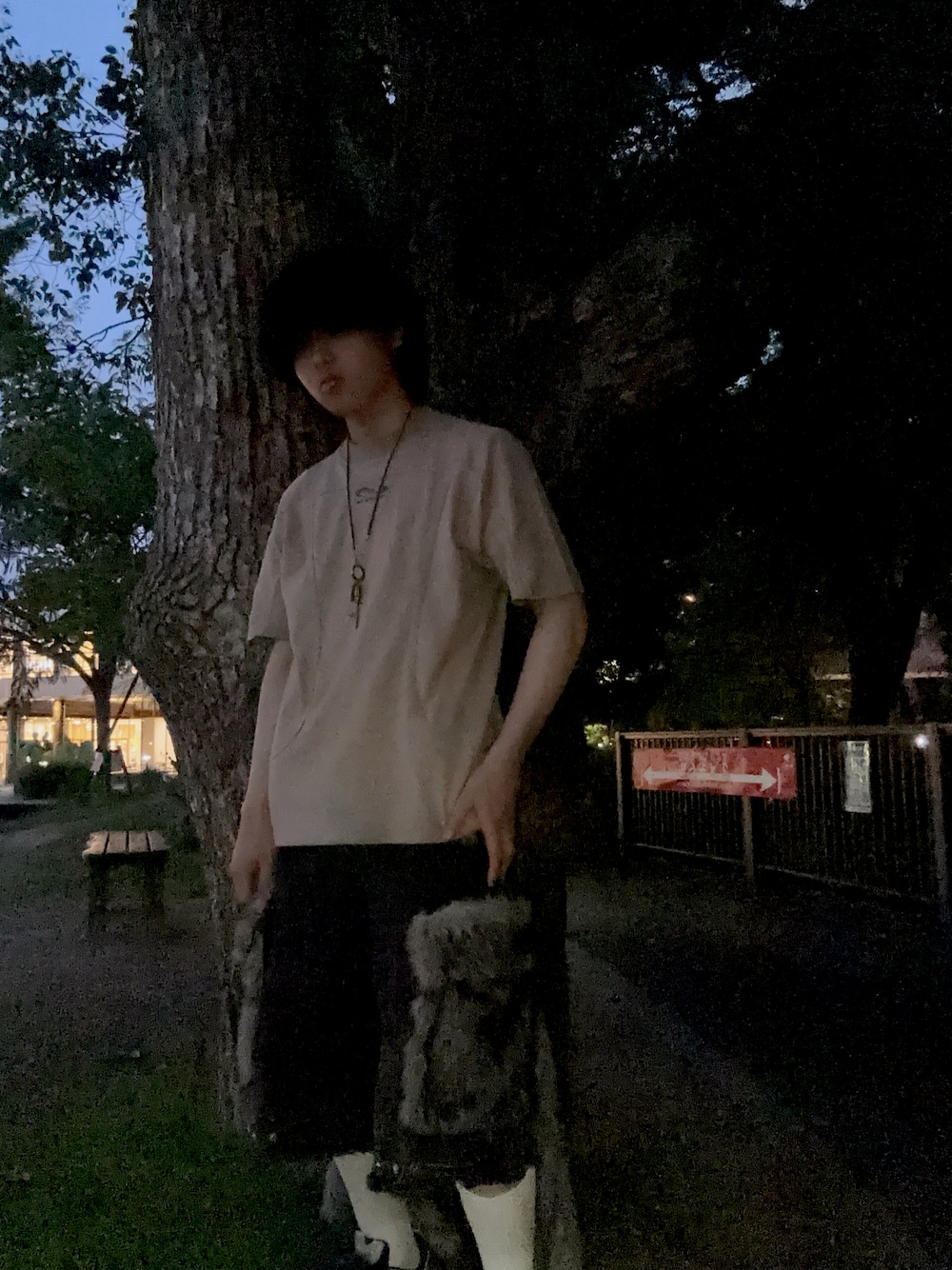 大悟です、どうものデニムパンツ「【GRANCY】FurPocket Design Half Denim Cargo Pants / ファーポケットデザインハーフデニムカーゴパンツ」を使ったコーディネート