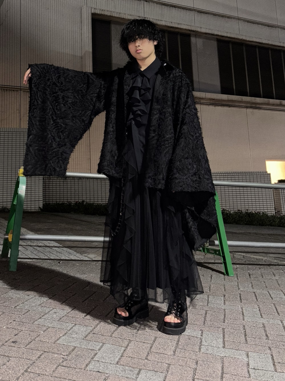 オールブラックかつスカートとインナーの素材感を統一しました。流石に暑かった。