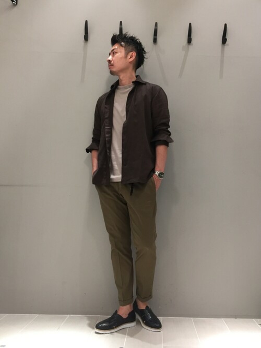 今年の夏はブラウンコーデに挑戦中です。 ABAHOUSEのフレンチリネンシャツは、非常に柔らかく、驚くほど生地も薄手なので、暑い日にもストレス無く着れそうです。 ワイドカラーなので、サマージャケットのインナーにも良くて、大人感のある仕上がりです。 パンツはlideal新作のトラウザーチノです。