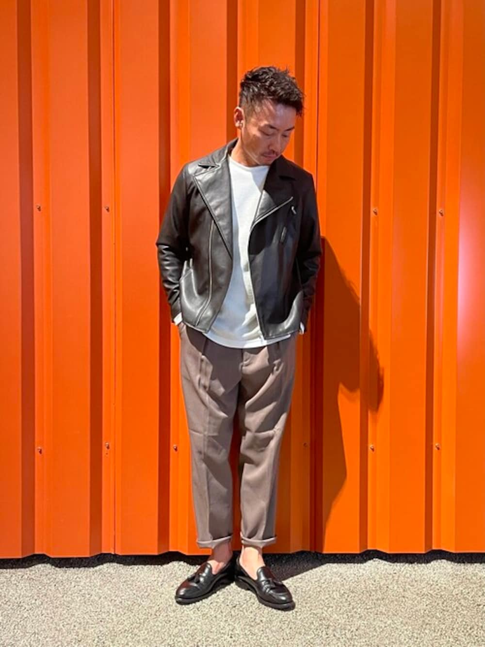 MYSELF ABAHOUSE のワンタックスラックスパンツ。 カラー表記はグレイッシュベージュですが、実物の色合いはスモーキーなピンクのような感じです。 ブラウン、ブラックと相性良さそうで、秋冬の暗めなトーンに差し色として使ってもOKですね。