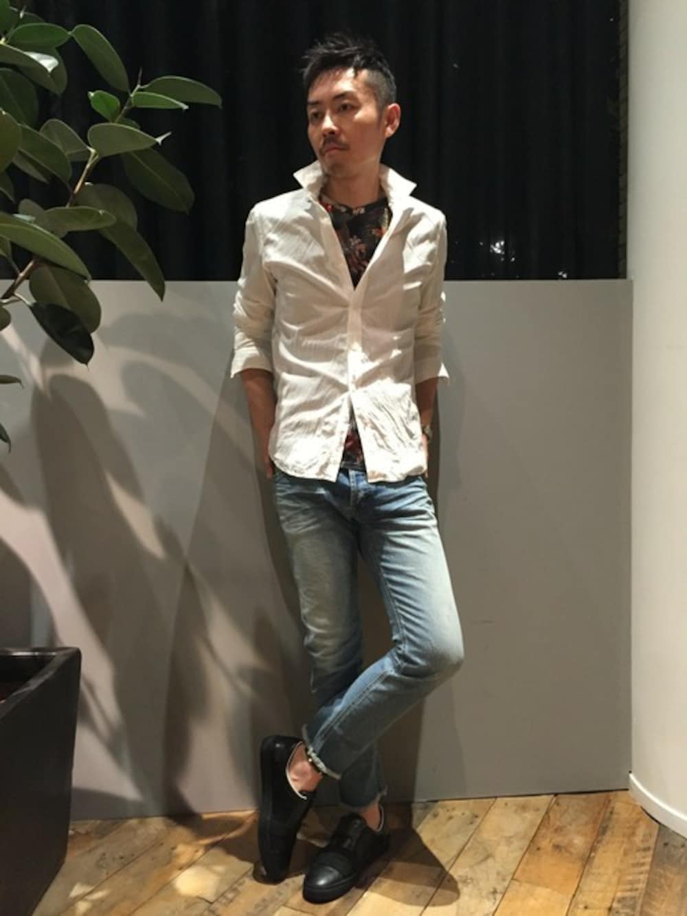 注目の切りっぱなしデニムのコーディネート。今年は取り入れたいアイテムのひとつですね。