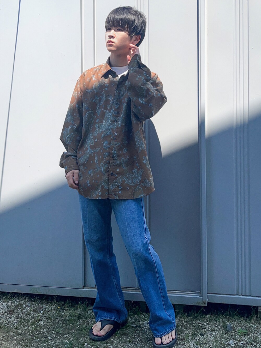 ペイズリーシャツコーデ