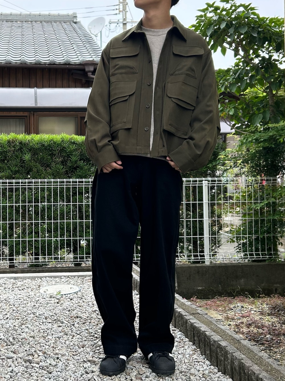 dai31のミリタリージャケット「Multi pocket military shirt jacket/マルチポケットミリタリーシャツジャケット」を使ったコーディネート