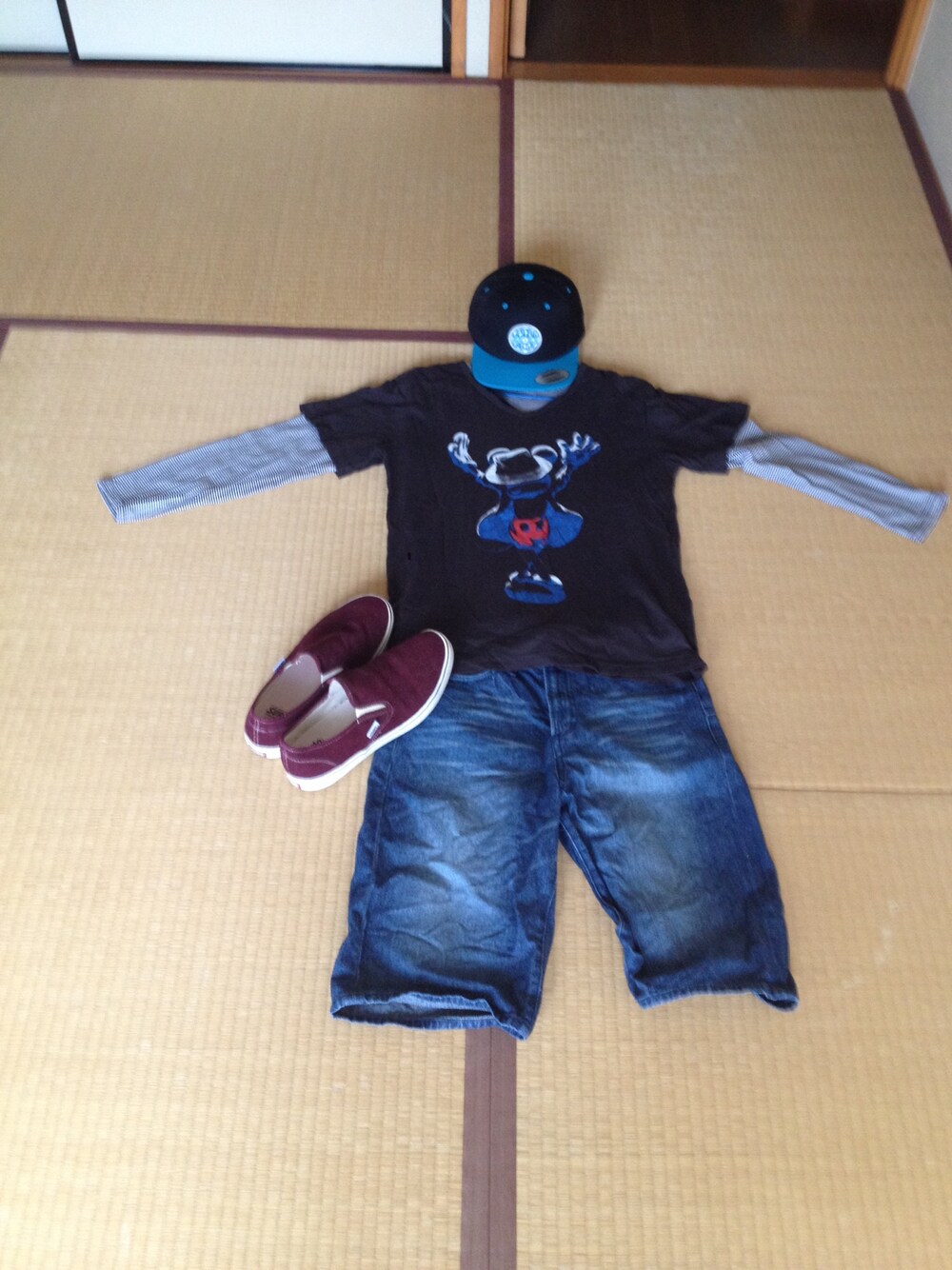 キャップ 地元のクローズアートというお店の 店員さんが立てあげてるブランドの やつです。いかしてます Tシャツ めちゃくちゃ可愛くないですか? ショーツ ジーパンで可愛さを少し抑えました 靴 サーフ系のリラックスしたものを選 選びました! 最近スト系が気分です。身長低いんでスト系似合ったりするみたいです。 なのでいろいろ挑戦してみようかと思います! なにか、オススメとかここ直せよ!とかアドバイスのコメントとかセーブお待ちしています! ストリートっぽくしてみました!