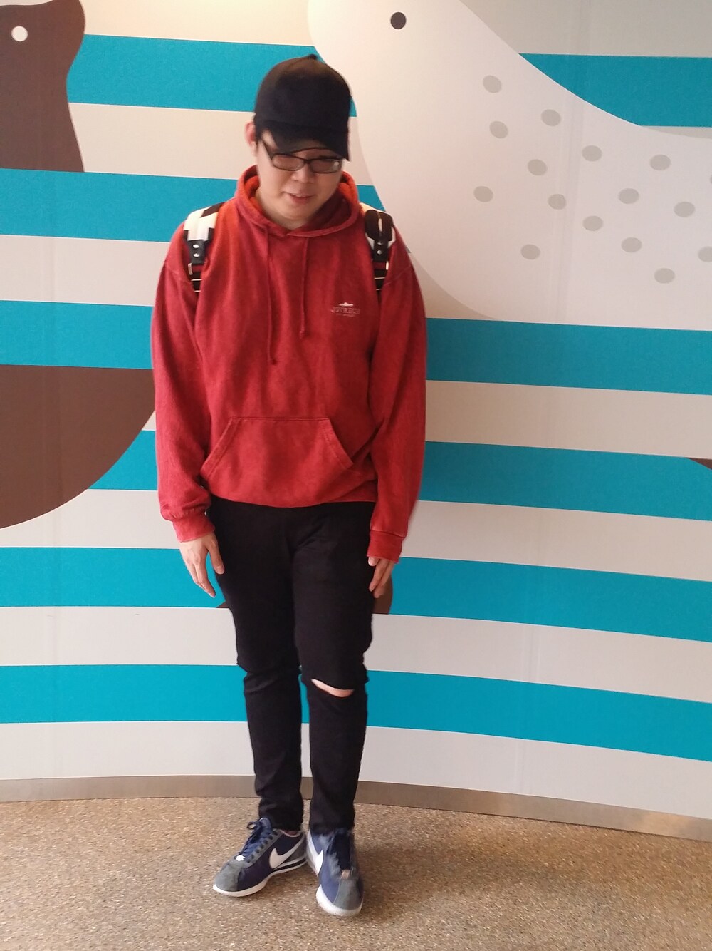 JOYRICHのパーカーとリュックのコーディネート! 京都水族館に行ってきました^_^ 帽子と靴は 京都の古着屋さんフラミンゴで 買ったものです! 状態も綺麗でお気に入り👍 今日の夜からすごい雨みたいなので 早めに帰ろう〜