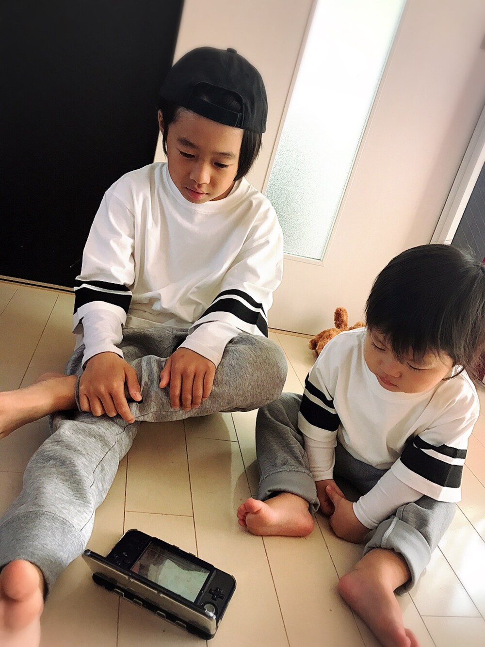 兄妹コーデ ラフなリンクコーデにしました 昨日の服の色違いのTシャツ690円です
