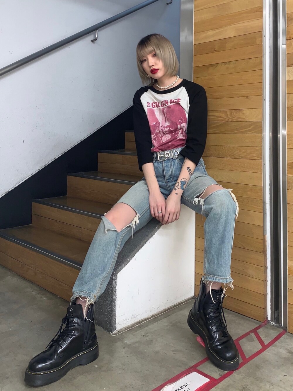 ヴィンテージライクなデザインのラグランロンTに、ボーイズデニムを合わせてストリートカジュアルコーデ。 ベーシックなロンTとはまた雰囲気が変わって、一枚持っているとコーディネートの幅が広がるアイテム❤︎ 7分丈で今の時期から重宝出来るロンT❤︎