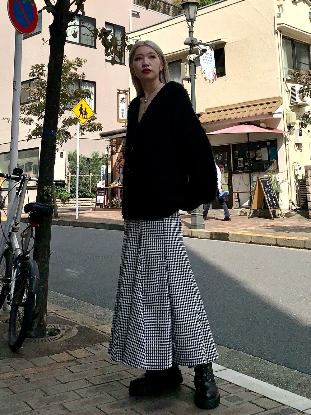 ゆる×ゆるで大人コーデ。 ボリュームのあるトップスでも、ボトムはマーメイドラインのスカートなのでシルエットも◎ jouetieらしい市松柄でコーディネートのポイントに♥ どちらも着心地が良いので素肌にもサラッと着れて気温の調節もしやすいアイテムです♥