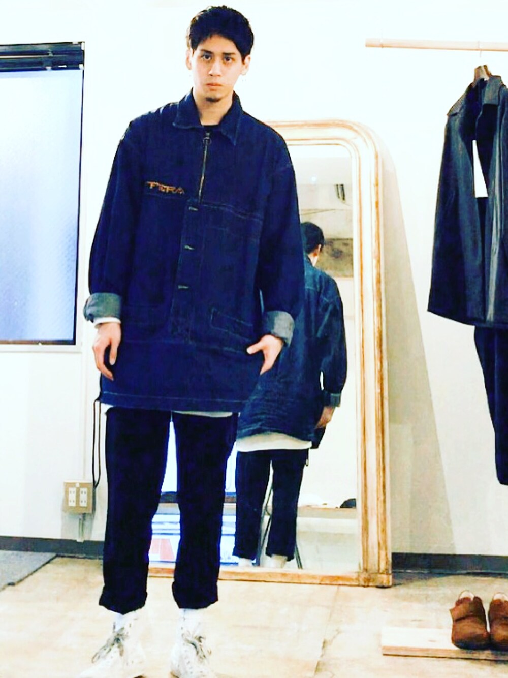 hello 先日購入した デニムプルオーバーカバーオール テンション上がって2日連続着とる いい服と会うとテンション上がりますね