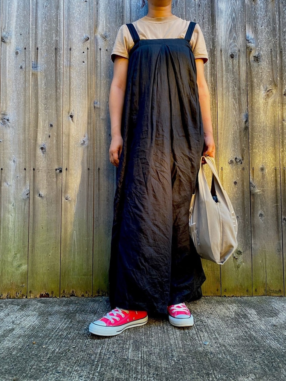 MIKIのサロペット/オーバーオール「リネンワイドサロペット」を使ったコーディネート