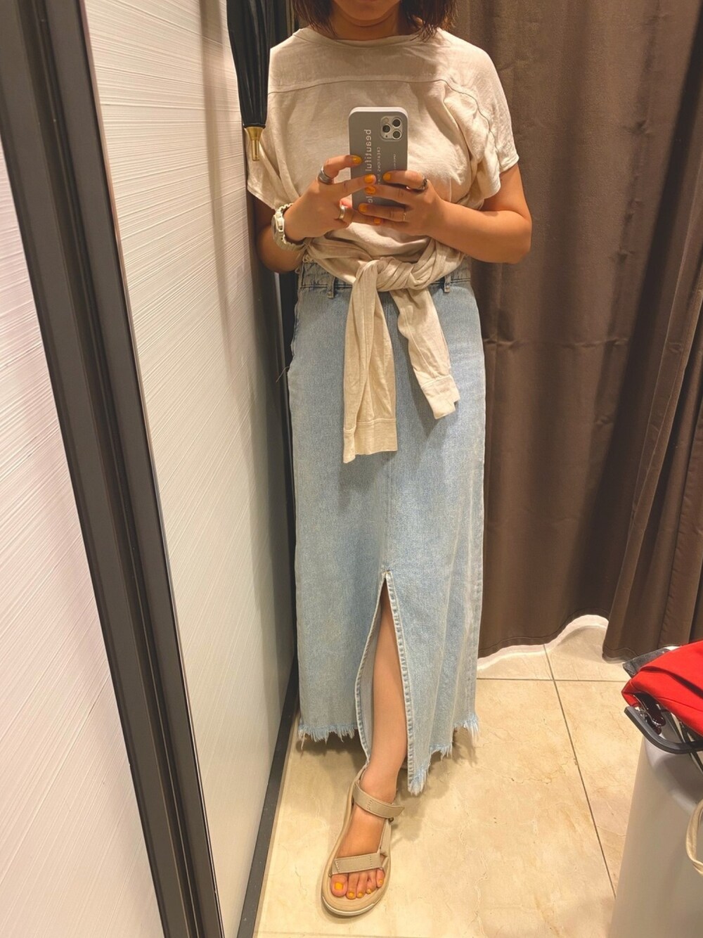 MIKIのデニムスカートを使ったコーディネート