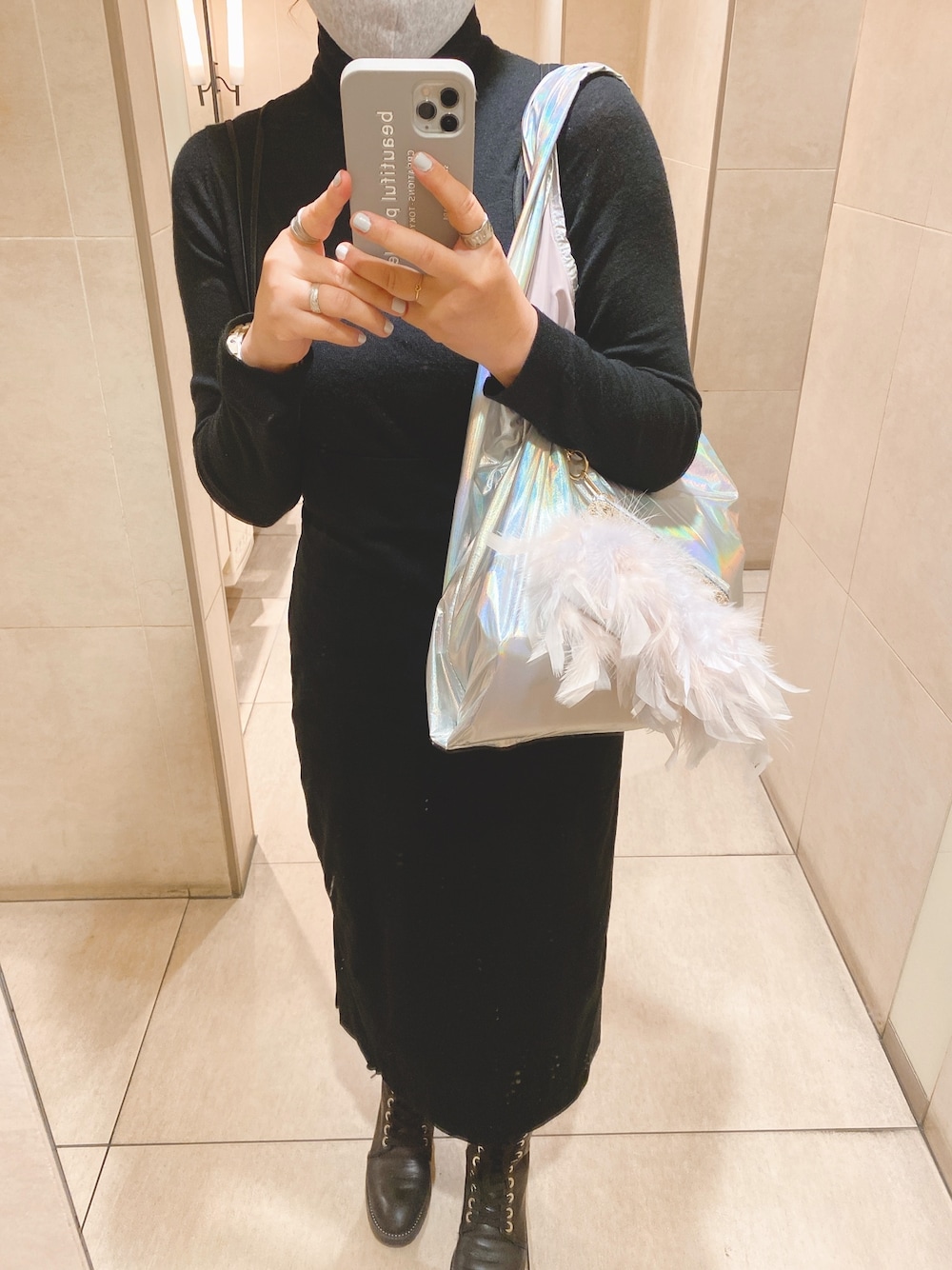 ブラックコーデ🖤🖤🖤 分かりづらいけど、 このベロアスカートお気に入り instagram→miki0.326