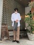 もう寒くて着れませんが秋服です🍁 このトートバッグ、折りたたみ式でクラッチバッグにもなる有能バッグなんです。 あとこのチャイナシャツのボタンのところのデザインが可愛すぎる、、