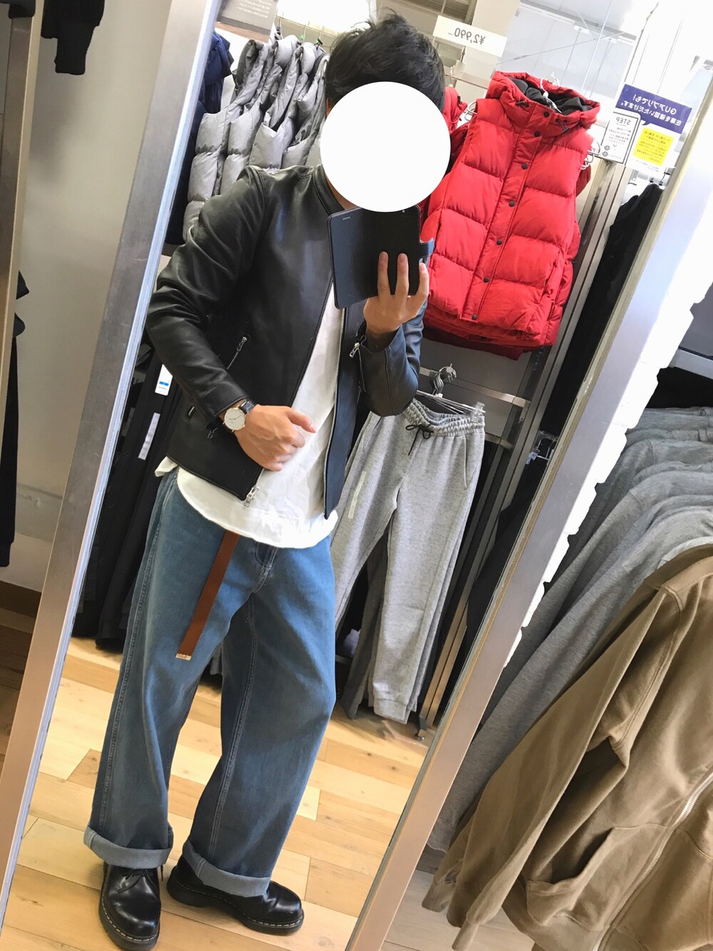 GUでパシャり📸 雨の中車でコーチジャケット買いに来ました🚗 黒は持ってたんですがカーキ色?のが欲しくて来ちゃいました LiDnMで固めちゃいましたがデニムのワイドパンツがどうしても履きたくて組んだコーデです 革靴もいいけどコンバースのオールスターでももう少しカジュアルになって秋っぽいかなと思います😤