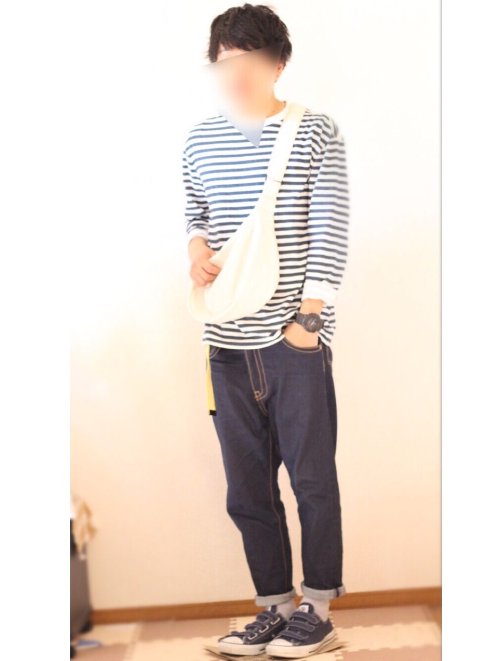 トップス:MHL. パンツ:Levi's シューズ:converse