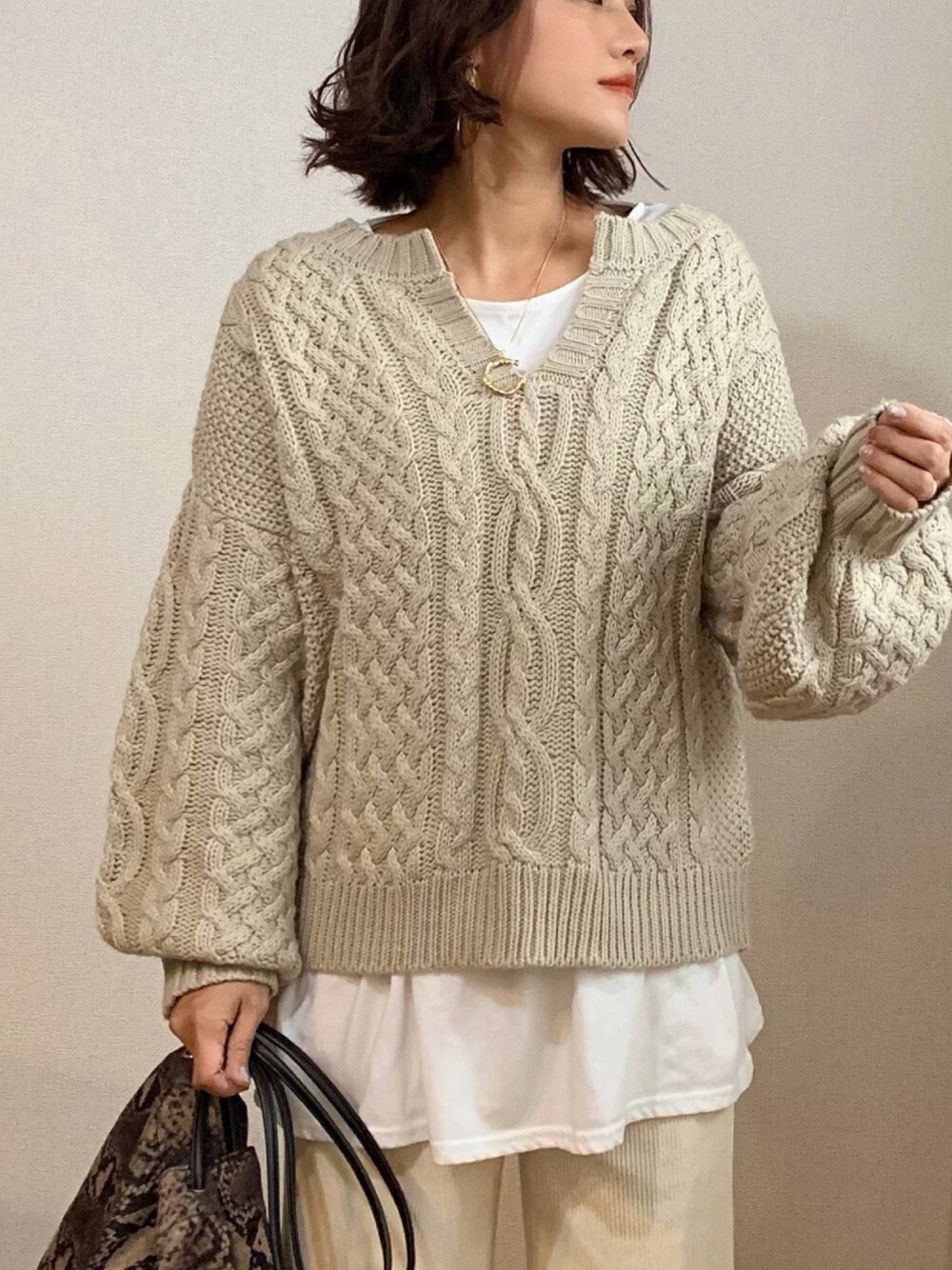 chi__ka❤︎のニット/セーター「WEARIST [yunさん着用] ケーブル編みキーネックニット」を使ったコーディネート