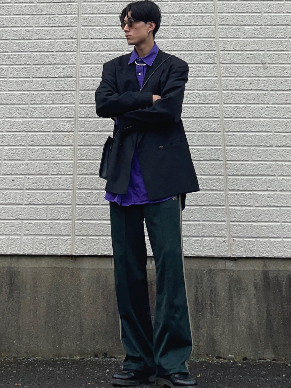 いつもご覧頂きありがとうございます😊 今回は珍しくモードな雰囲気のコーデを組んでみました😎 サンローランのジャケットにインナーはポロラルフローレンのシャツ、足元はマーチンのローファーときれい目にまとめながらもパンツをトラックパンツで外しにいったコーデになります! 色もトーンを揃えてダークな感じを意識しました⬛️
