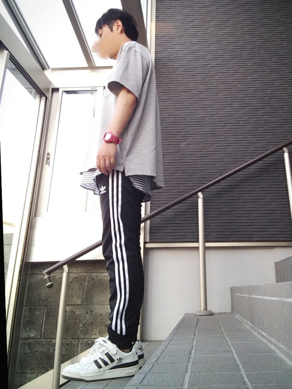 近所のパン屋さん🍞へコーデ🙏🏻 要は家族のパシりってことで😑 暫く履いてなかったアディダスのフォーラムLowが突如出てきた。 ちょっといいかも👍 ピンクのG-SHOCKでタグ付けちゃお