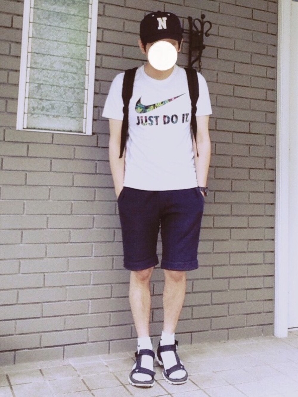 Tシャツ、ナイキ。 ソックス、ナイキ。 胸のナイキのグラデーションのロゴが 目立つようにベーシックなカラーを 使いました。・:+°