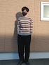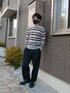 アーバンリサーチのカラフルなボーダーに、ボトムや靴は黒で合わせました。 ピンクの差し色がかわいい印象のボーダーニットでです。
