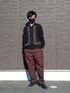 UNITED TOKYOの柄シャツに、ナノユニバースのブラウンのワイドパンツを合わせました。 重めのダークカラーコーデ。