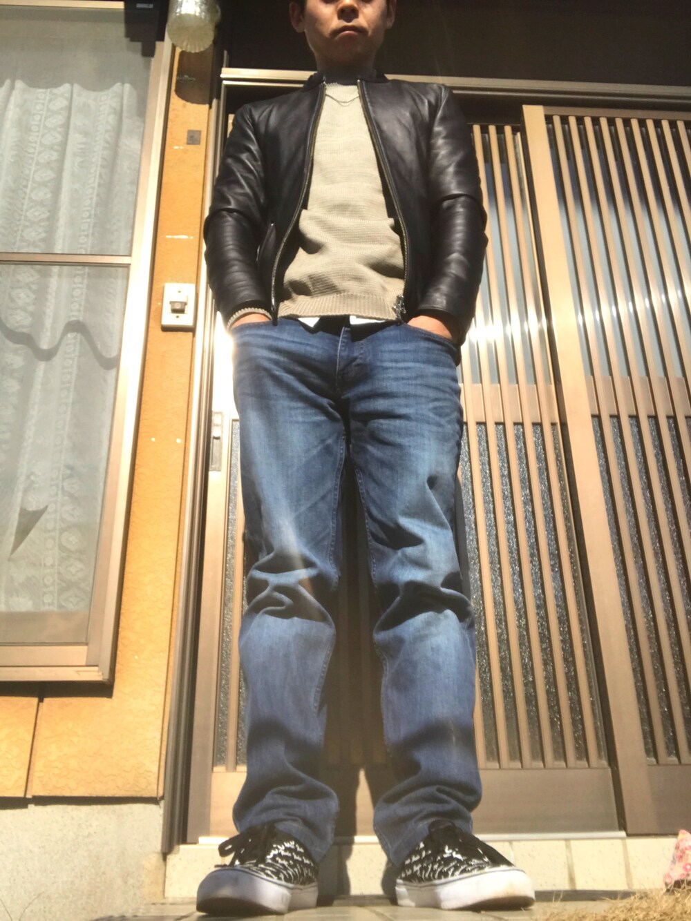 1/22 休みだったから久しぶりにレザー着てみた😀 ニットがモックネックでヒートテック重用してる俺にとってはいい✨ ベージュはなかなか新鮮な色味