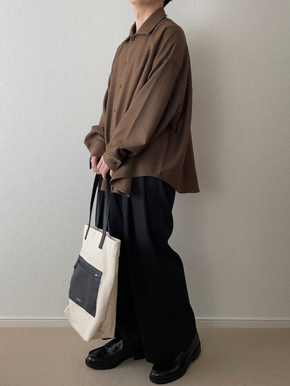 ご観覧ありがとうございます 今日はシンプルにシャツ×ワイドパンツ。実はシャツは千鳥柄で差別化 参考になったらぜひいいねとsave、フォローお願いします