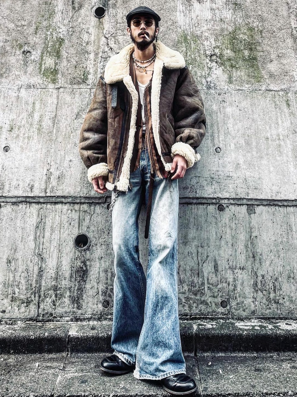 今日はB-3を使ったコーディネート! . 中にはohtaの羽織りがレイヤードしたときにいい味出してくれます! . この冬オススメなアウターなので是非チェックしてみて下さい! . ハンチング @schott_japan アウター @pigsty_shibuya シャツ @kodona_tokyo パンツ @levis ブーツ @bud_vintageclothing サングラス @g.b.gafas_shibuya