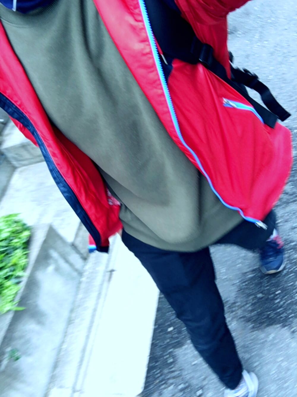花見に行きました。赤と紺のナイキのナイロンパーカー。春はベビロテ確実。
