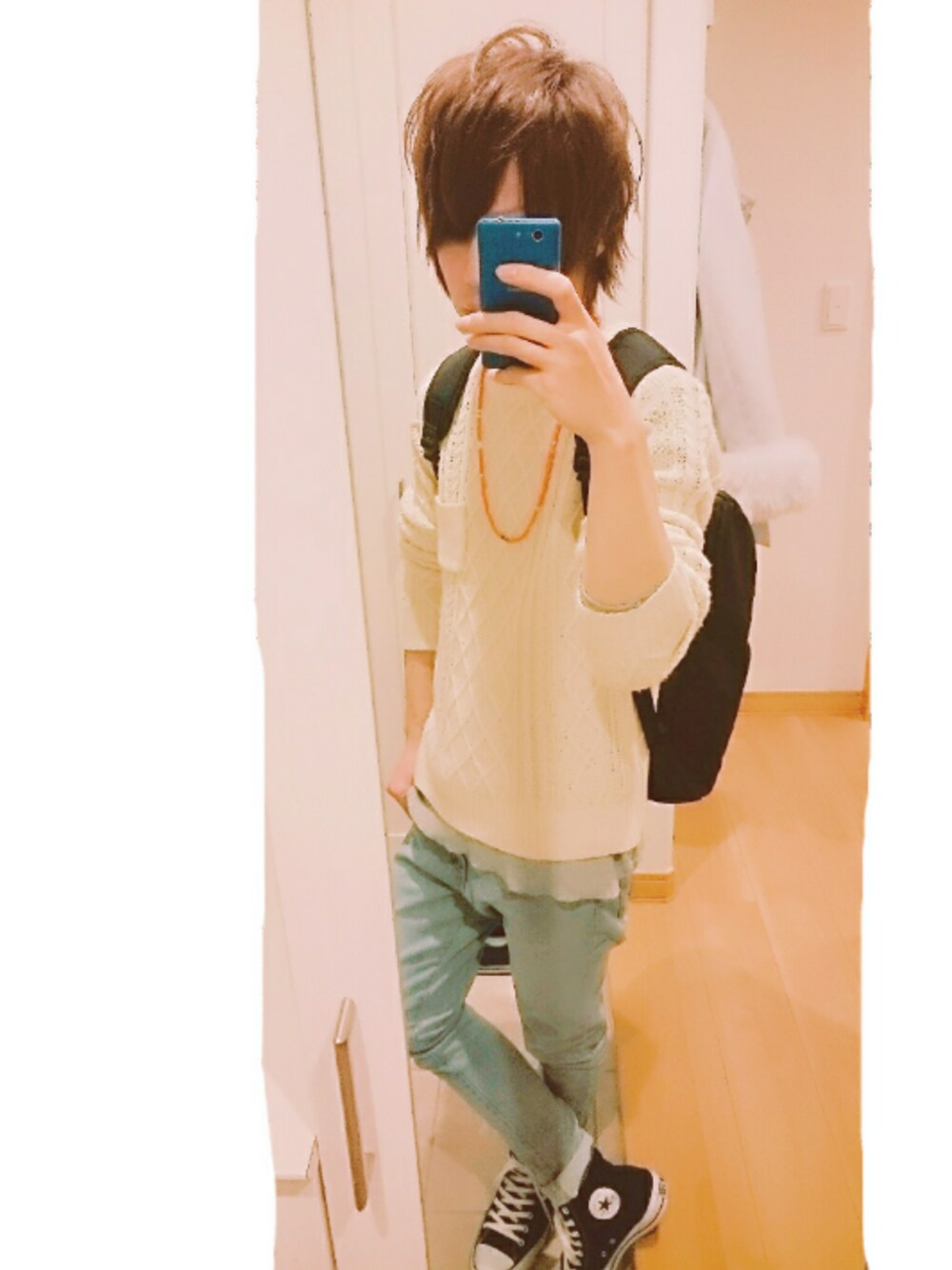 白ニットにウォッシュデニムを合わせました(๑・㉨・๑) リュックと靴はCONVERSEです( -`ω-)✧