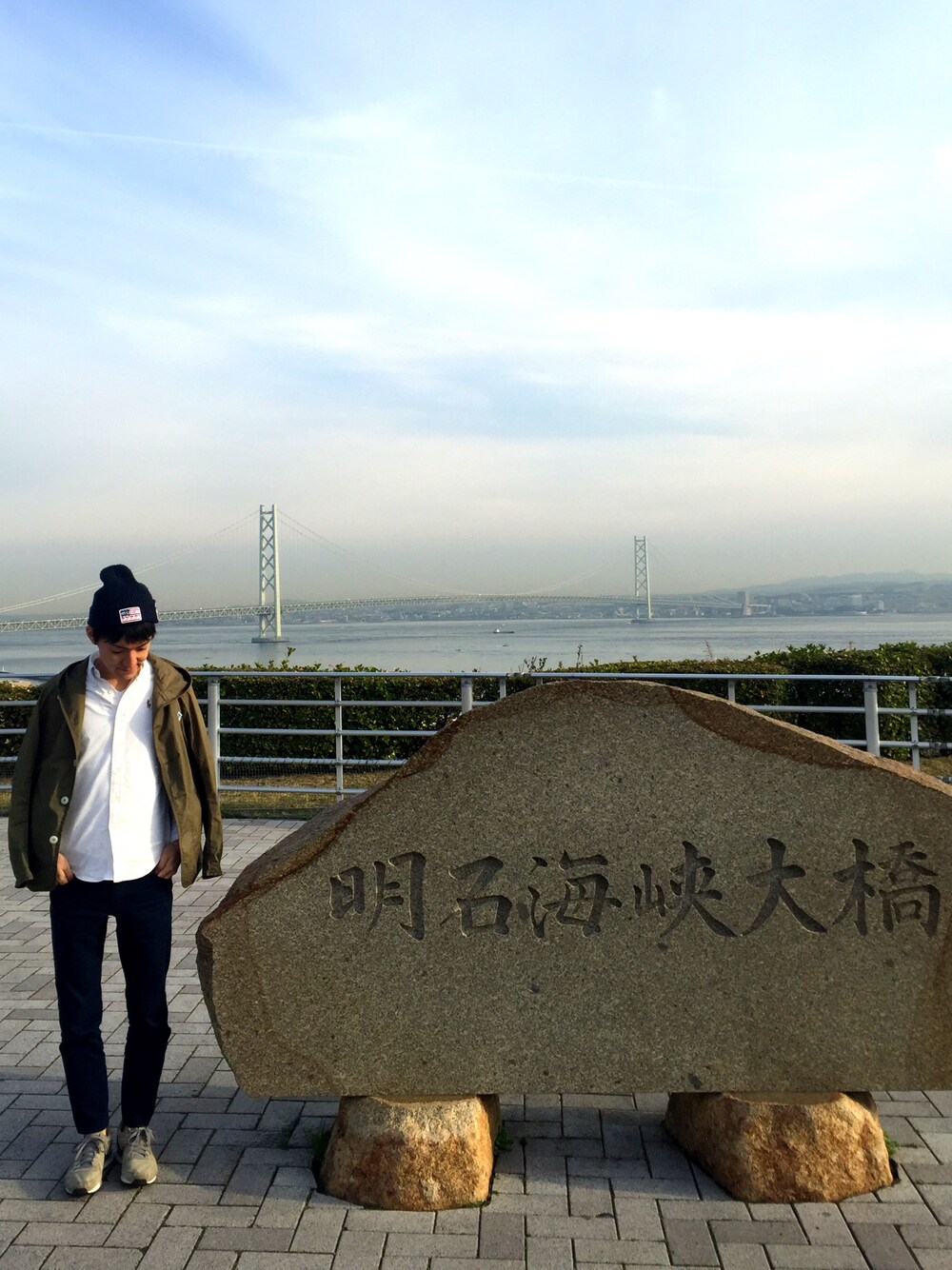 四国一周旅行に行きました。 明石海峡大橋にて。